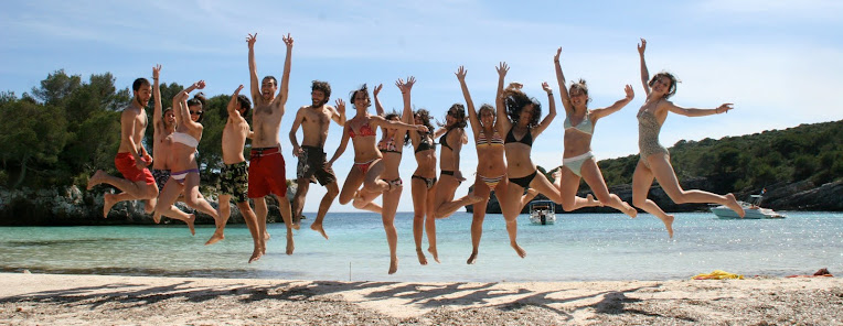 Catalina y Marta saltan poco antes de embarcar con destino a la Isla ... nos vamooooos (24 de abril de 2010)